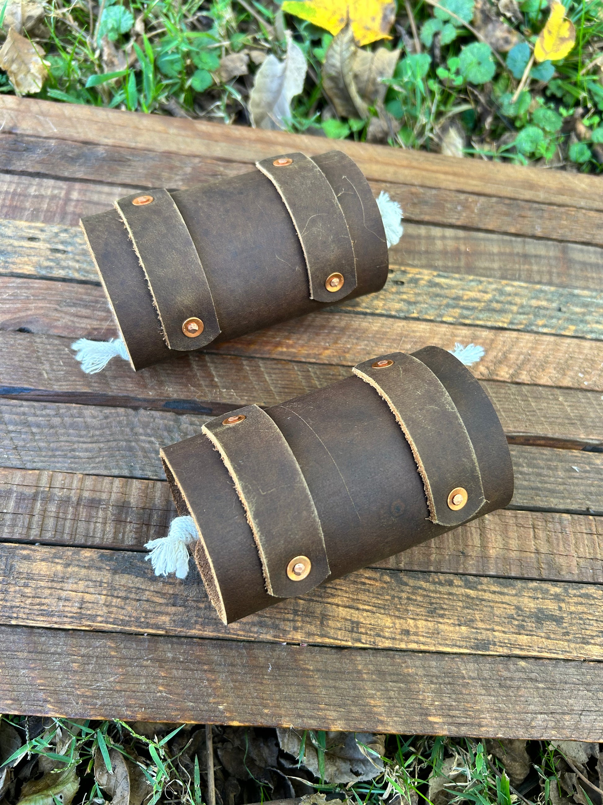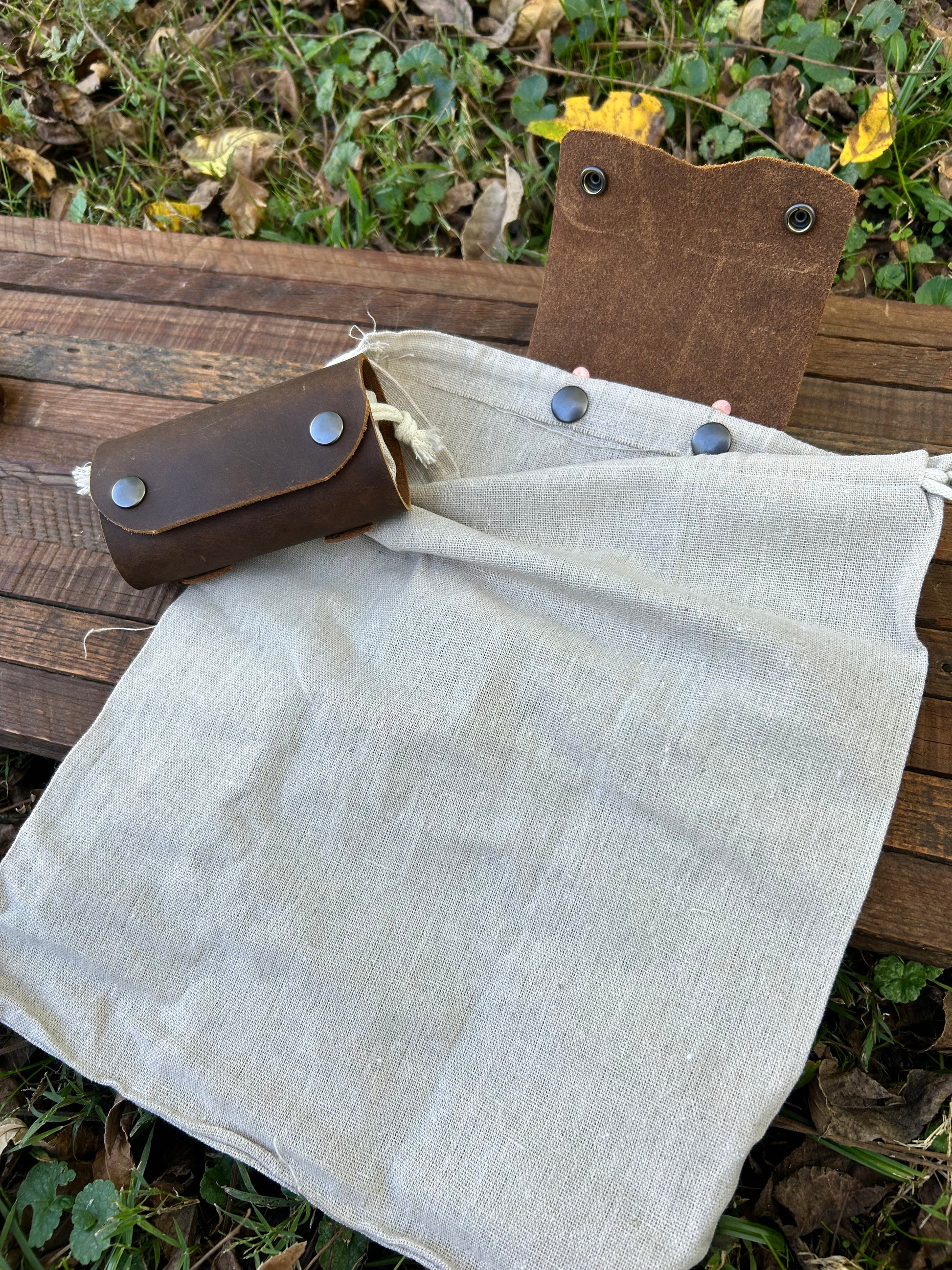 These foraging bags are cotton, wrapped and snapped inside of hand tooled and hand painted full grain leather. The cotton bag is held by 2 strong snaps & is easily detached from the leather for hand washing. (These bags are meant to hold plants/mushrooms & are not intended for heavy weight-rocks, shells, etc) Each belt bag is hand crafted and shipped from the Midwest. Choose between clean edge or rough edge.