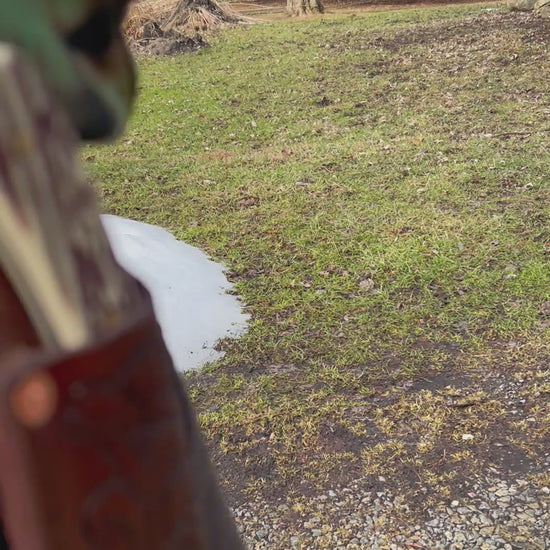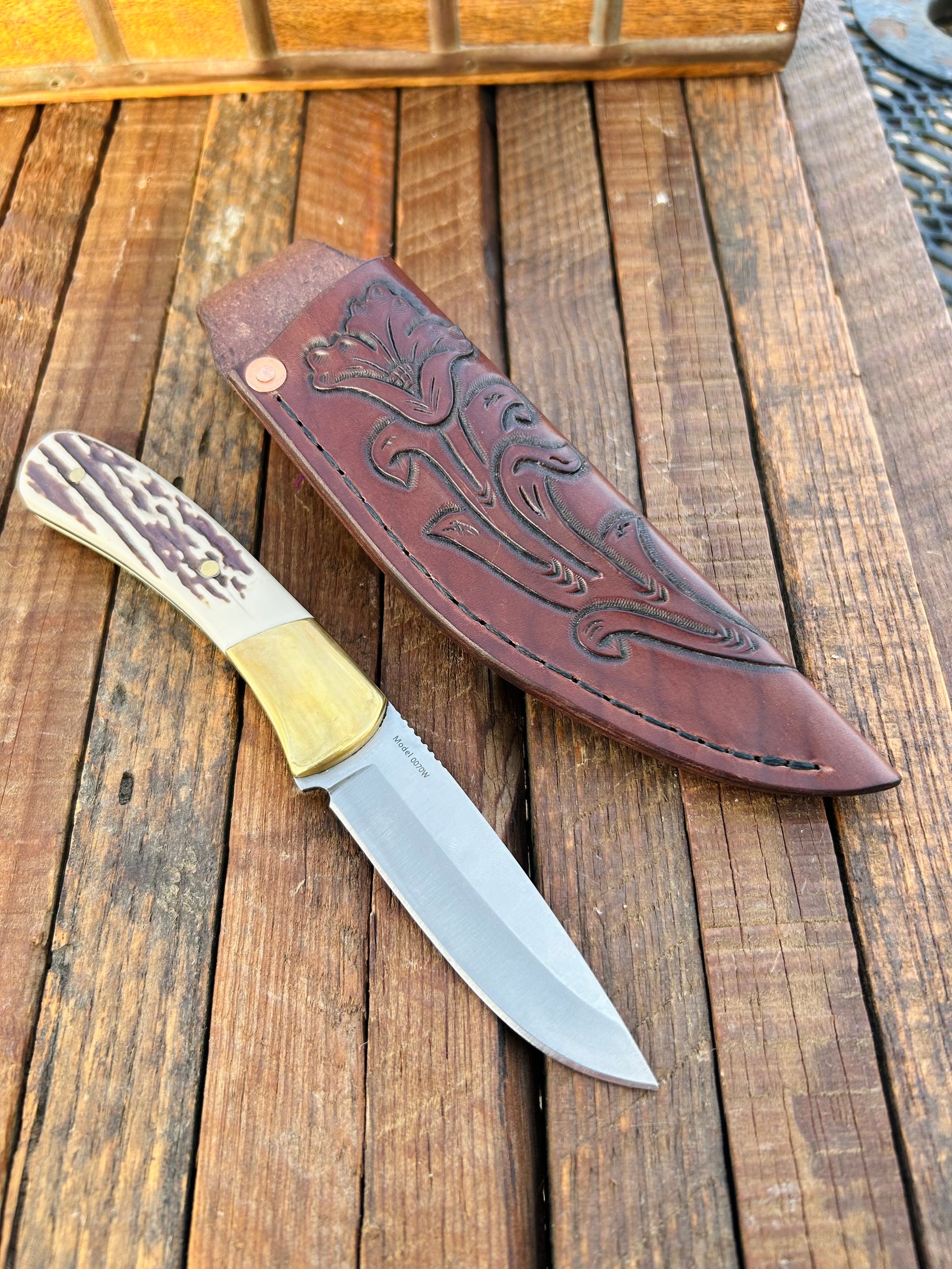 Fits a hardened steel 7” fixed blade with synthetic stag handle(included)