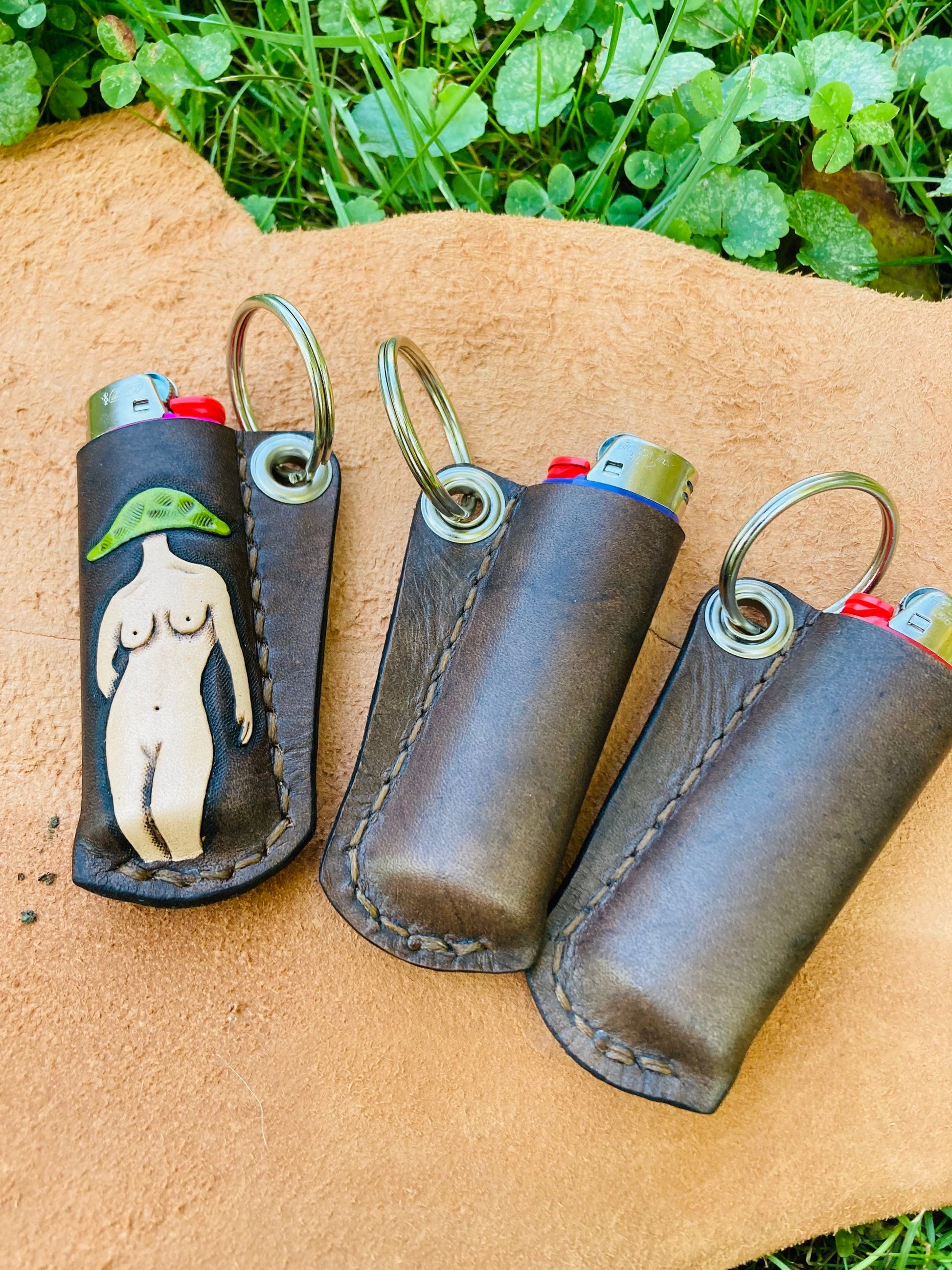 These good looking lil ladies are hand tooled and hand dyed full grain leather. They are hand stitched, light weight, & very strong! If you choose initials please leave note at checkout.