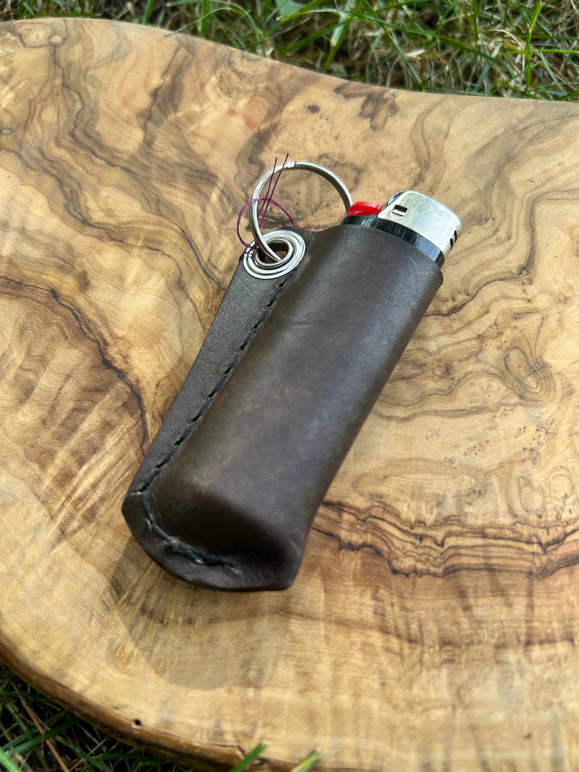 This morel lighter is hand tooled, hand painted, & hand stitched. It’s made from full grain leather and fits a normal sized Bic lighter(not included)