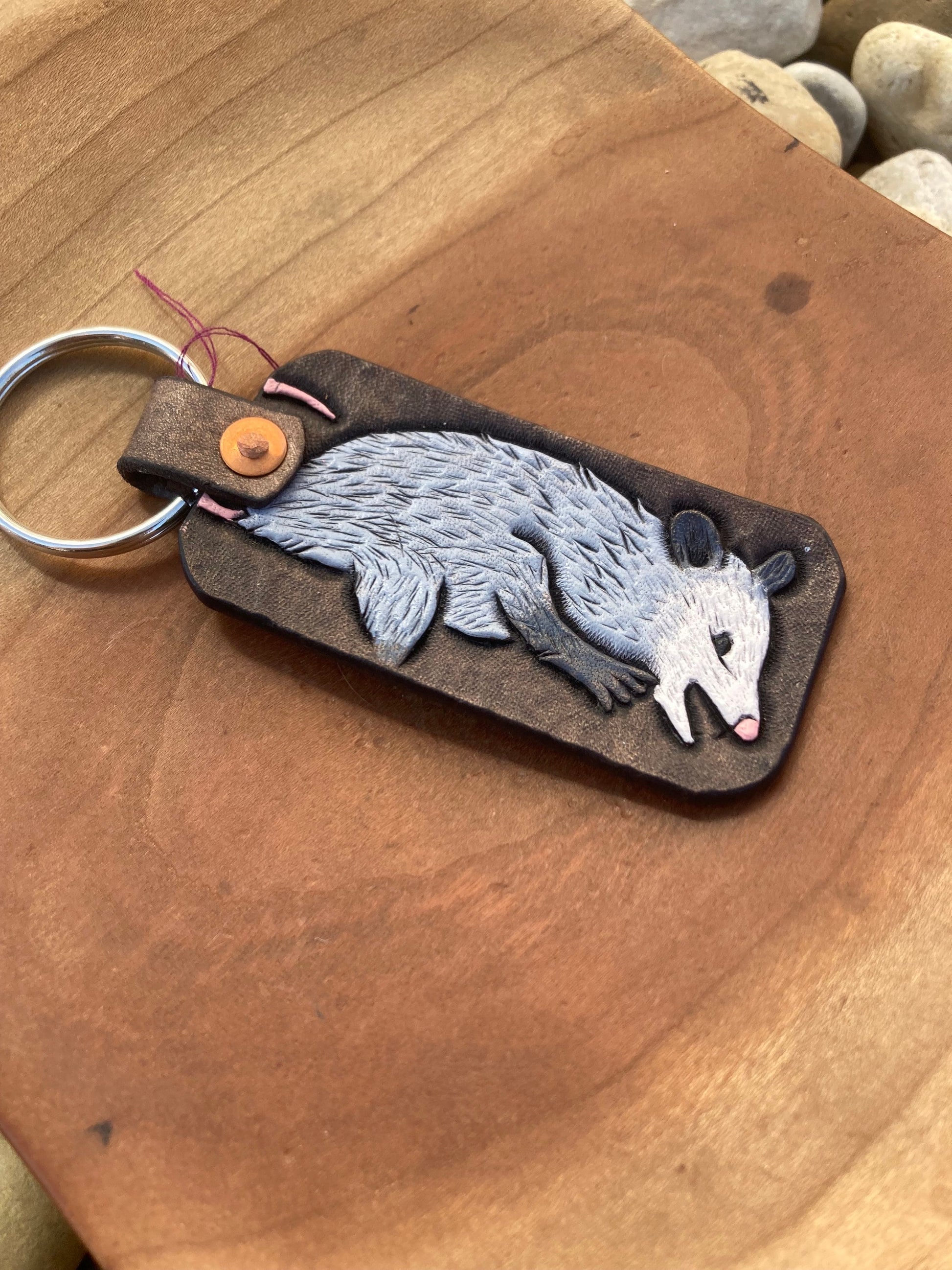 These gorgeous little keychains are hand tooled and hand painted. Made from full grain cowhide leather. They are lightweight and very strong! These are made to order, please allow slight variations in color as I mix paints on every keychain.